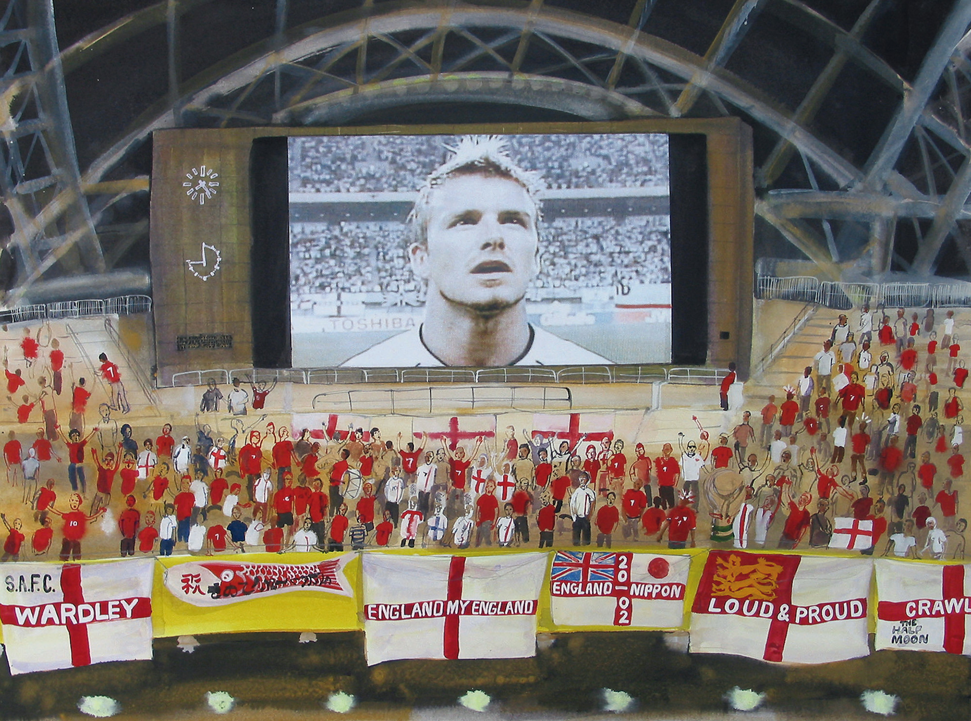 2002 – Japan and Korea. Tim was the PFA's artist following the English football team in Japan and Korea. After this tournament he worked with fan groups travelling and documenting English football fans at home and abroad for many years. Many of these paintings belong in the PFA's football collection in Manchester.